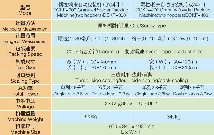 DCKF-300-1/DCKF-300-2三邊封/四邊封顆粒粉末兩用背封包裝機